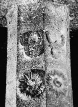 Right aisle pillar & Buddhist symbols in relief- Triratna, lotus motif
