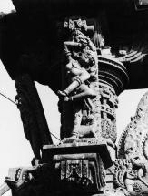 Subject: Alasi Nayika Light Stand . Nayaika translates to’ heroine’. Sculptures of nayikas in various roles and moods are commonly found in temples of Odisha. These are meant to depict facets of social life along with other sculptures. The 'Alasi Kanya' is a popular motif of a lady stretching her arms upwards. View from the front of the stand. This object has been loaned by State Institute for Development of Arts & Crafts (SIDAC).