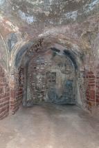 Vaulted chamber inside the entrance gateway with arched niches and traces of mural decoration