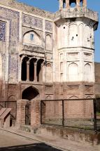 Detail of right side of the east facade of the Eastern Gateway (Delhi Darwaza) with engaged octagonal northeast turret