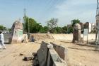 View of the eroded west facade of the triple-storied Southern Gateway (Delhi Darwaza)