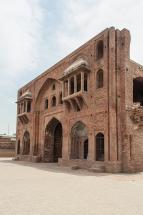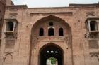 View of the eroded west facade of the triple-storied Southern Gateway (Delhi Darwaza) and northwest corner bastion