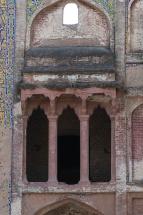 Detail of the left wing of the double-storied Western Gateway (Lahori Darwaza) with arched alcove and balcony and glazed tilework