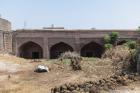 Subject: View of the cells and octagonal canopy atop the turret of the Eastern Gateway (Delhi Darwaza) from the roof of a residence beside northern sarai cells