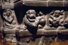 Upper portion, top register: Defeat of Mara by Buddha in the form of enthroned triratna ; Stupa Vedika (Railing), Entrance, Prasenajit Pillar