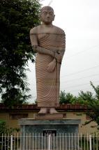 Subject: Railing Pillar originally enclosing the Mahabodhi temple precinct, detail showing gift of the Jetavana. Figures place objects that represent exaggerated coins on the ground to represent the gift of Jetavana, a park on the outskirts of Shravasti that was given to the Buddha and his followers.