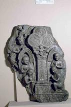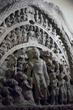 Middle register of tympanum: Worshippers at right; Naga Apalala's Conversion