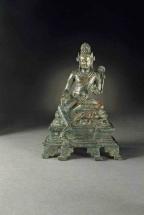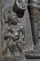 Subject: Nayanar, detail: Saint Sundarar (handsome one) lived in the early years of the eighth century and acquired the epithets of “insolent devotee” and “the lord’s friend” because of the familiar tone toward Shiva that he adopted in his songs. His mode ranges from gentle ridicule through impudence to almost abusive demand. According to the legends, the youthful Sundarar, born of Brahmin parents, stood decked as a bridegroom when an aged man intervened and stopped the wedding, claiming that Sundarar was his bonded slave. Sundarar responded by repeatedly calling him a madman but when papers confirming his bondage were produced and validated by the village council, Sundarar had no choice but to follow his new master.