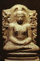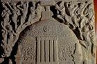 Architectural fragment with Enthroned Buddha and Stupa with Celestials