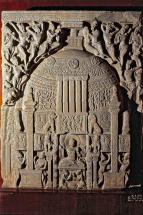 Architectural Relief, Devotees Worshipping Throne with Wheel