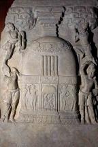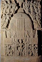 Upper portion, Dome of Stupa ; Architectural fragment with Enthroned Buddha and Stupa with Celestials