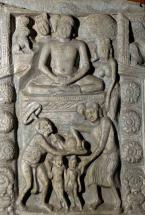 Right portion, Dipamkara (Dipankara) Jataka; Architectural Fragment; Dipamkara Jataka (Right) and Mithuna (Left)