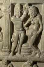 Lower portion, Mara's Hosts below the seat of the Buddha; Architectural Relief, Temptation by Mara and Mara's Daughters