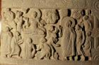 Middle Register: Merchants offering food; Stupa Slab, Scenes from the Life of the Buddha