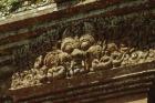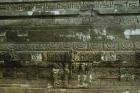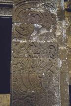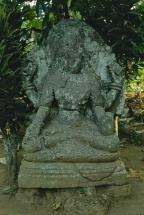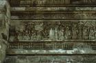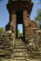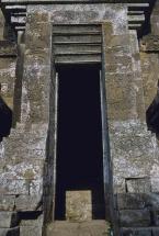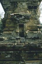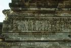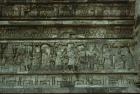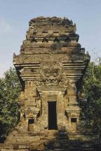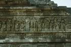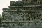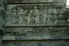 Subject: Base, South Facade, West End, Scenes from the Sudamala, relief 3: Kunti returns home and announces she will deliver Sadewa to Durga; she meets (left to right) Yudistira, Bima, Arjuna, Sakula and Sadewa; facing Kunti is Semar; Not completed. Memorial to Rajasawardhana, Prince of Mahatun (d. 1388). The Sudamala story from the Mahabharata, concerning the deliverance of Durga, is illustrated in a counter-clockwise direction around the monument.