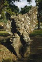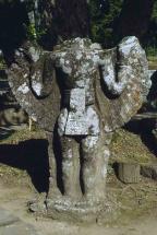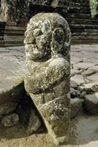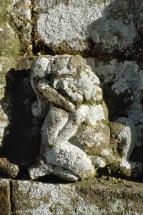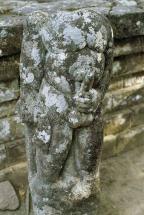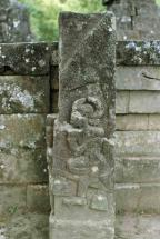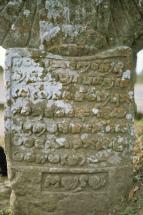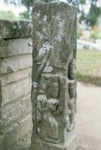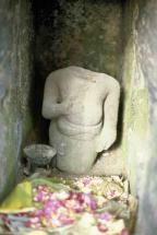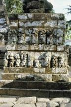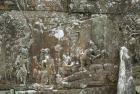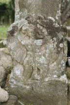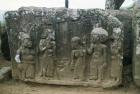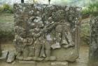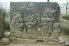Subject: Compound northwest of main monument, Third terrace, Relief with Scene from the Sudamala, panel 2, Durga threatening Sadewa in a Cemetery: Durga and dismembered body parts