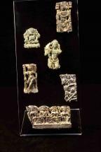 Subject: Group of six small sculptures including top left: Miniature Seated Ganesa; top right: Miniature Male Figure; top center: Karttikeya; center left: Salabhanjika