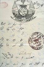 Subject: When a stamp dealer tried to order copies of the obsolete 1885 issue, he supplied a catalog illustration for reference. This illustration did not include sprigs shown in the issued stamps. State authorities sent the illustration to printers, who produced stamps utilizing this sample just as shown including the perforations. Stuck with supplies when collectors rejected them as bogus fantasies, Sirmur's postal authorities used them for postal purposes. [Stamps with Printed Perforations]
