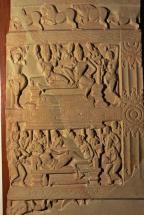 Upper Register: The First Sermon; Stupa Slab, Scenes from the Life of the Buddha