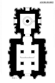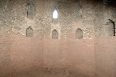Single-storied arched gatehouse, interior, entablature topped by Ribbed central vault on semi- octag