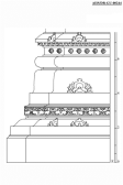 Fa?ade, wall-panels (w/ kashikari decoration) above central arched passageway topped by entablature