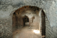 Forepart, interior, Barrel vaulted corridor [A] leading to Rectangu-lar compartment [B] and therefro