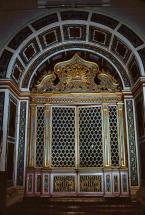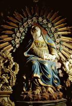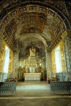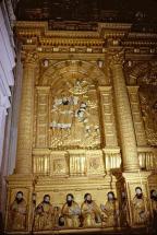 Subject: Altar, gilt altar with painting and sculptures of Crucifixion and Mary