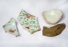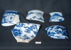 Fragments of blue and white pottery bowls