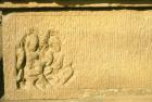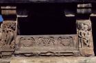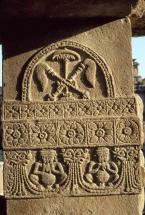 Subject: East Facade, Outer Balcony. South face of north corner column: Half medallion with royal symbols, chauri (whisks) and chhatra (umbrella) and decorative band with floral motifs, ganas and kirttimukhas