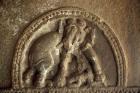 Subject: Unlocated column shaft, lunette: Elephant trampling a male figure