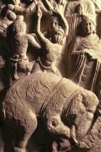 Subjugation of Nalagiri , Architectural Fragment from a Vedika (Railing), Stupa Medallion