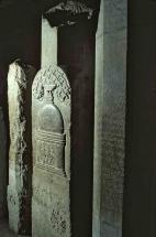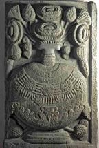 Center Pillar: Stupa with Naga; Left: Inscribed pillar, Three Upright Reliefs