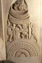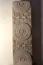 Subject: Adjacent (to left) to Ramagrama, the Relic Stupa of Buddha ; Pillar Roundel, Worship of Stupa with Multiple Umbrellas, Stupa Medallion