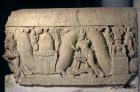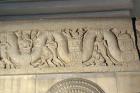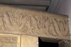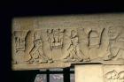 Figures and scenes of worship separated by swag, Coping Relief Scroll