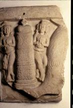 Frieze with Figures and worship scenes , Pillar with Lion Capital and Inscribed Lintel