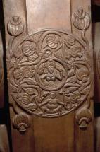 Subject: Lower portion, panel: Worship of the Buddha in the form of a throne and Bodhi tree; Stupa Vedika (Railing), End Post