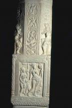 Octagonal Pillar with Floral Motifs and Human Figures and Base with a Female Holding a Flower