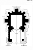 Interior, rear bay showing in the middle a throne room of inlaid marble with a highly ornate pietra