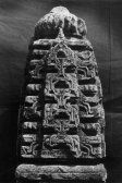 Interior, view of hall, central arch showing perforated screen in marble, floral pattern in spandrel