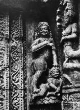 Navaranga, south wall, Bracket, Mohini singing, attendants playing drums and flute