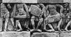 First gallery, inner west face, balustrade, lower relief 66, drummers, detail