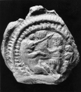 Subject: Stone disc fragment with honeysuckle pattern. The honeysuckle motif is similarly treated on the abacii of Maurya animal capitals, particularly the Rampurva bull capital (Ref. Art of Inida and Pakistan, London 1949, pl 2)