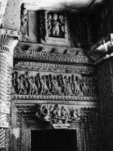 Mandapa, devakulika facing W, at southeast corner, detail: above doorway