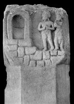 Subject: Railing pillar, detail of upper part showing a male and female worshipper