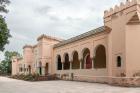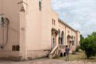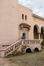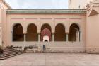 View of right wing, east facade of the arcade with a series of horseshoe arches leading to an inner courtyard