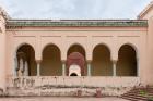 View of left wing, east facade of the arcade with a series of horseshoe arches leading to an inner courtyard