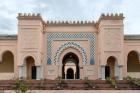 View of the east facade, central arched entrance of the mosque adorned with tilework