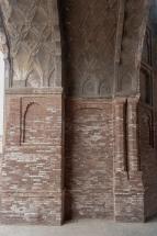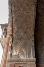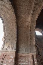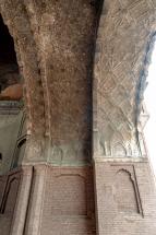 Subject: Stuccoed soffit of the archway on north side of the triple-storied Southern Gateway (Delhi Darwaza), wall on east with pillars on right side