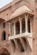 Oriel window (left) on south facade of the triple-storied Northern Gateway (Lahori Darwaza)