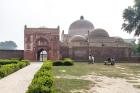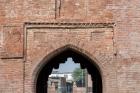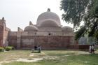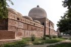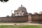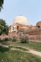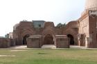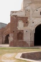 Subject: Liwan, large domed central chamber with high pishtaq along with three-bayed, triple-aisled dilapidated south wing and the adjoining lost southern gateway